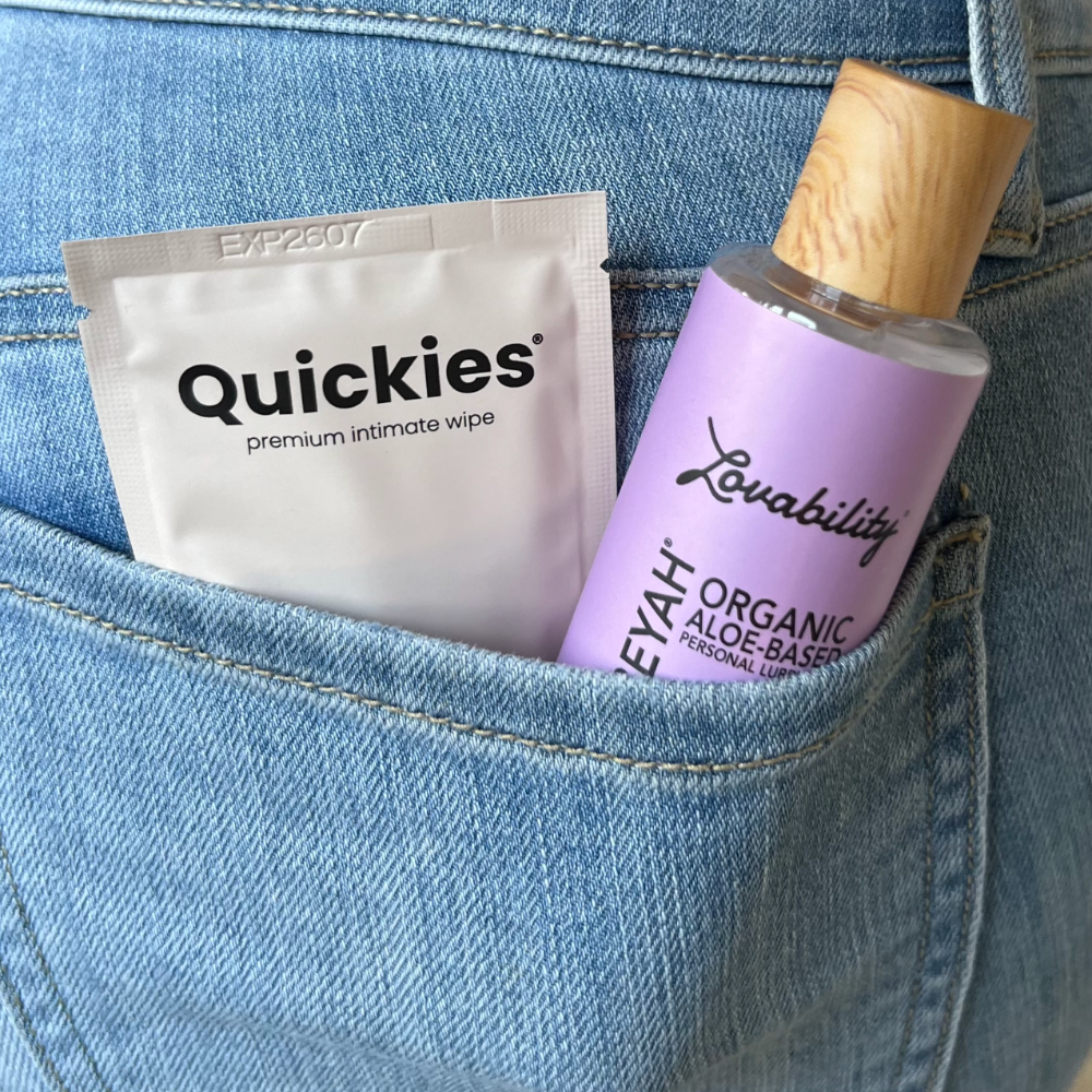 Our dynamic duo of silky smooth organic aloe lube and pH-balanced intimate wipes so you're always prepared. Bundle & Save $5