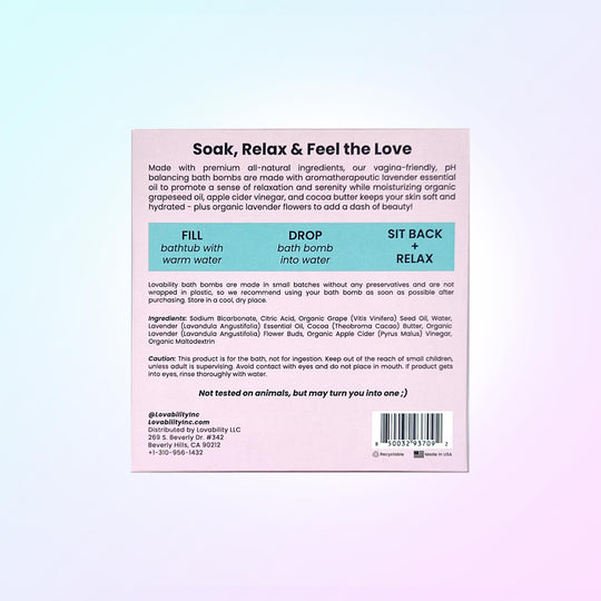 This Lovability bath bomb is safe for your vulva because it is crafted with gentle, natural ingredients that avoid common irritants. It contains no artificial dyes, parabens, phthalates, sulfates, or other harsh chemicals, ensuring it maintains the delicate balance of your skin and prevents irritation or discomfort.