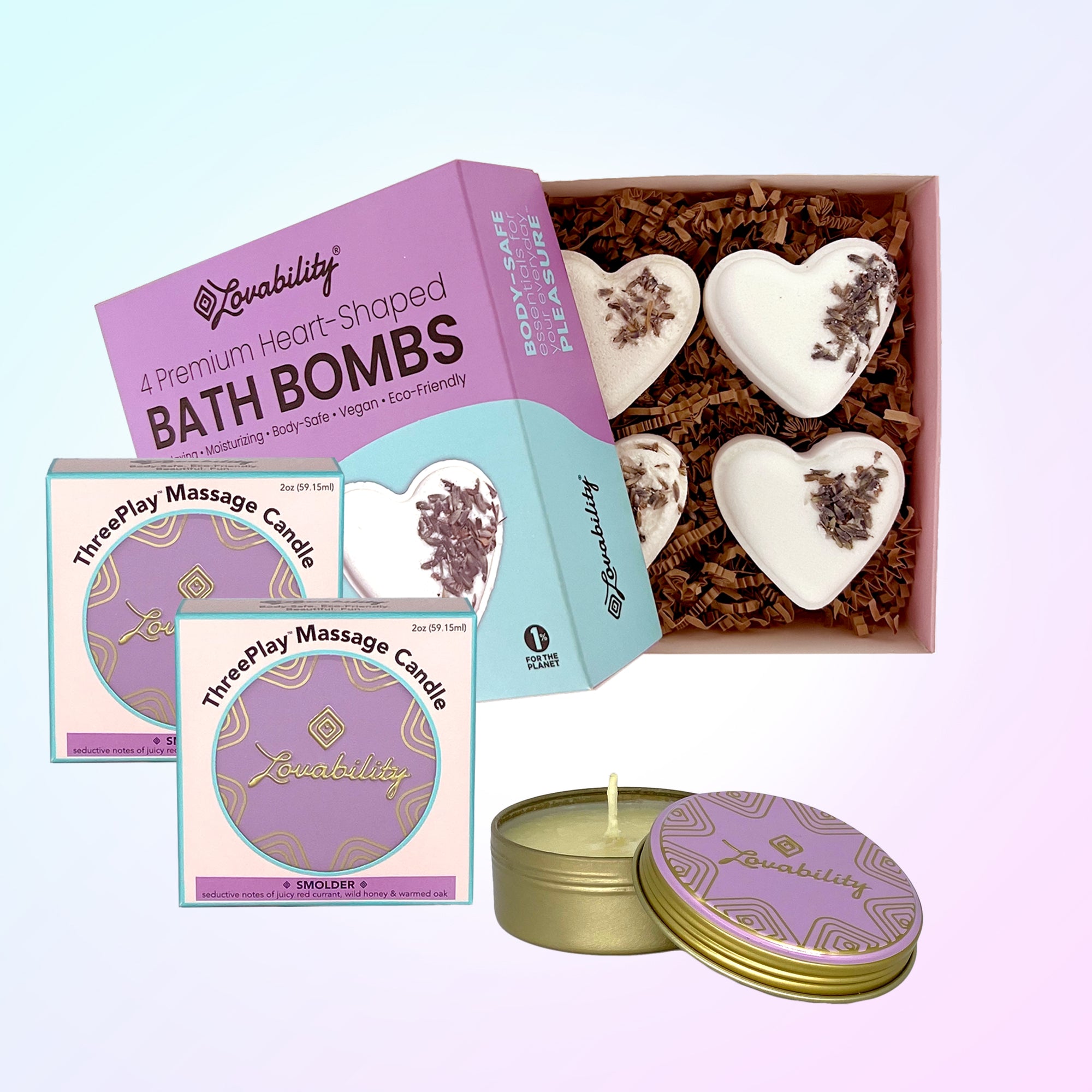 For a relaxing & moisturizing experience, indulge yourself with body-safe Heart-Shaped Bath Bombs.