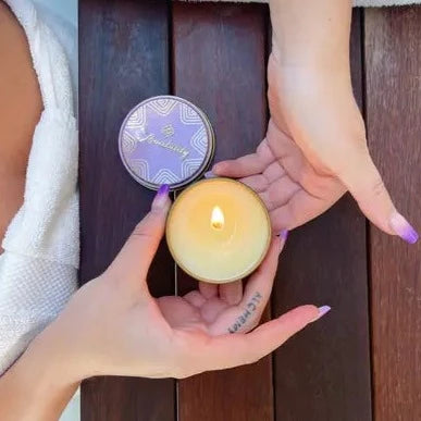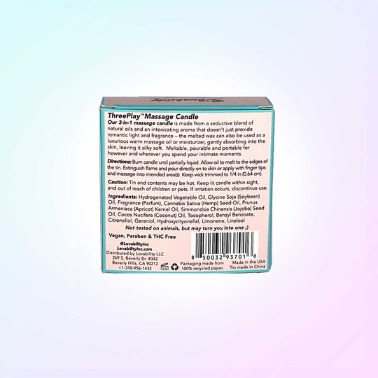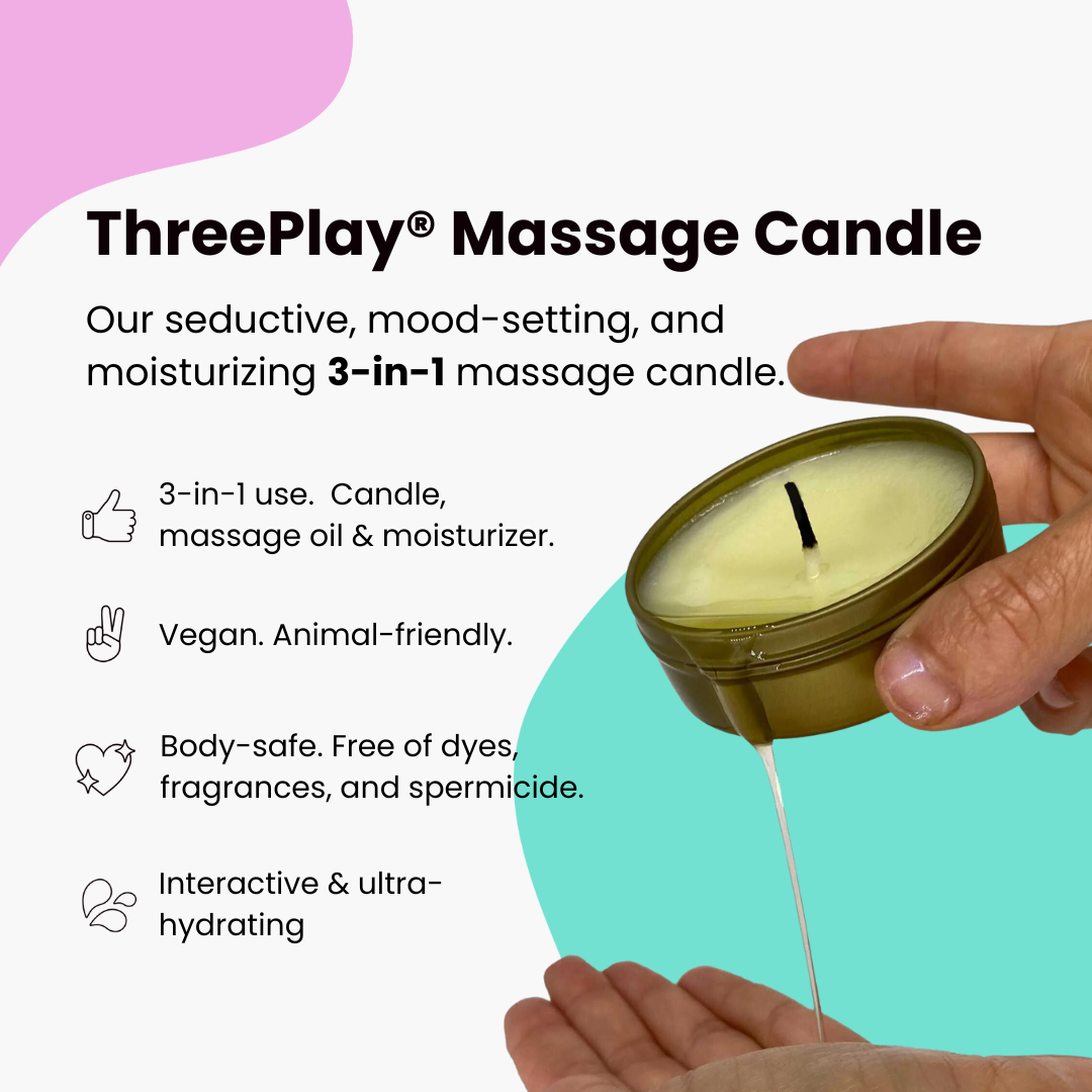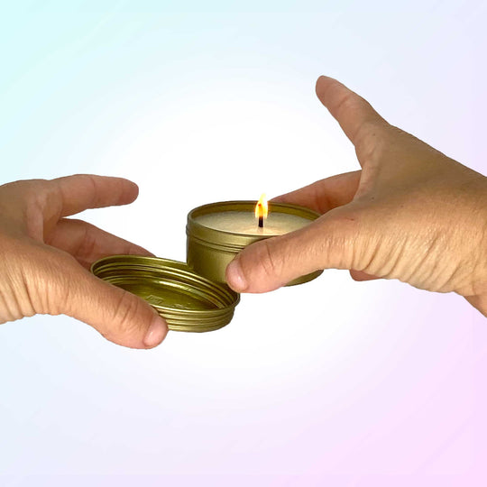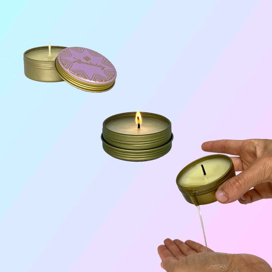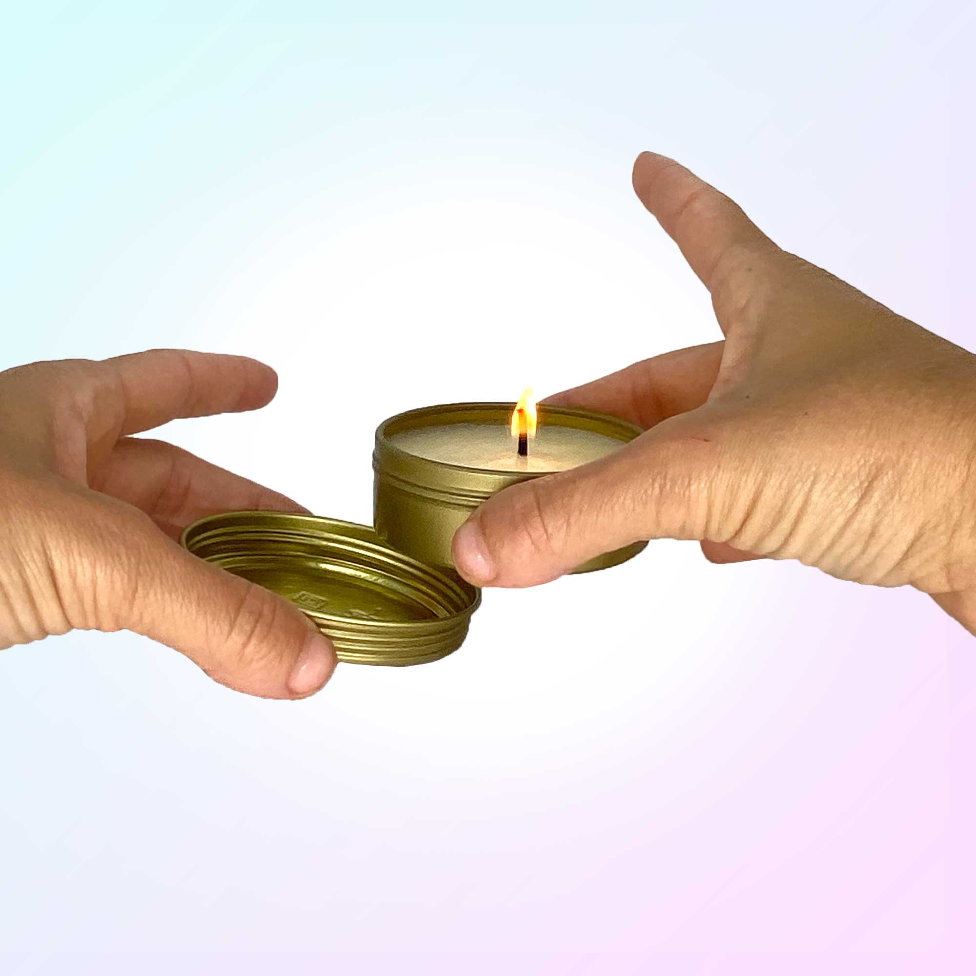 Specially formulated to melt a couple degrees above body temperature, our candle doesn’t just provide romantic light and fragrance – the melted wax is also a warm massage oil or moisturizer.